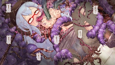 - 触手に拘束された水色の髪でメガネを掛けた女教師が触手をイラマチオさせられながら乳首を触手でほじくり回され白目をむいて悶絶する