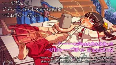- ロリ巫女のせれんが長い棒を喉の奥までねじ込まれ同じ棒で膣を串刺しにされて嘔吐しながら潮を吹く