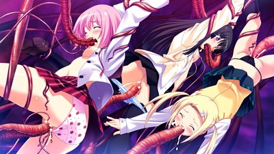 - 金髪ツインテールのジブリール・ユノスが触手に逆さまで吊り上げられ口と膣を触手で串刺しにされて犯される