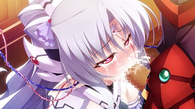 跪かされ機械のチューブを耳から挿入され脳をいじくり回されるテリアが主人公のチンコをイラマチオさせられる