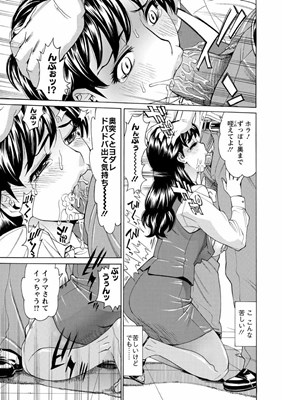 - OL制服を着たままひざまずく総務部の高坂が筋肉質な主人公に頭を手で押さえつけられてイラマチオさせられ顔を精液でどろどろにされる